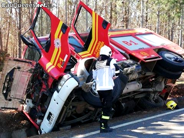 En Cauquenes: Carro de bomberos se volcó cuando se dirigía a una emergencia