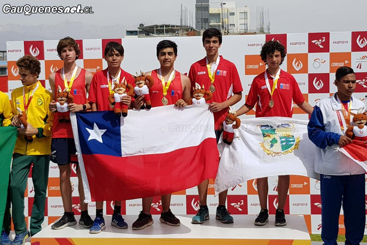 Cristián Ríos, junto al equipo chileno de relevo 5×80 metros, ganadores del Oro en sudamericano escolar de Perú.