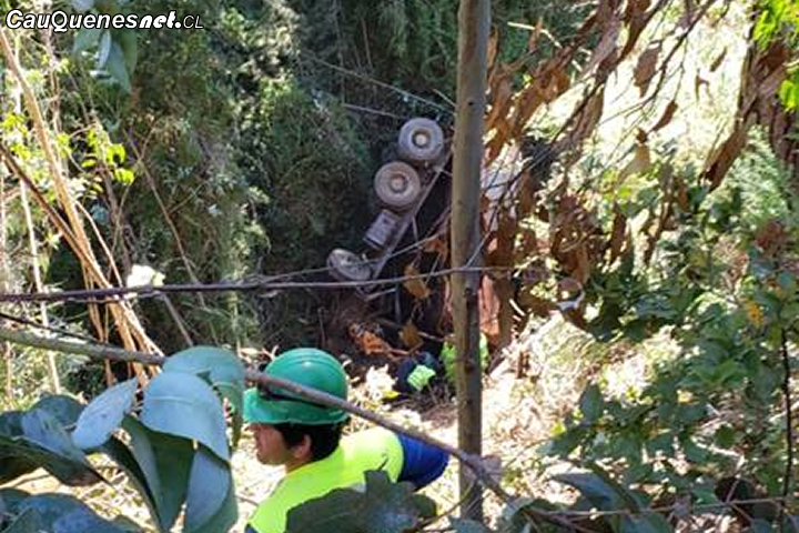 Un camión habría caído a un barranco en el camino a Pelluhue tras sufrir un desperfecto macánico.