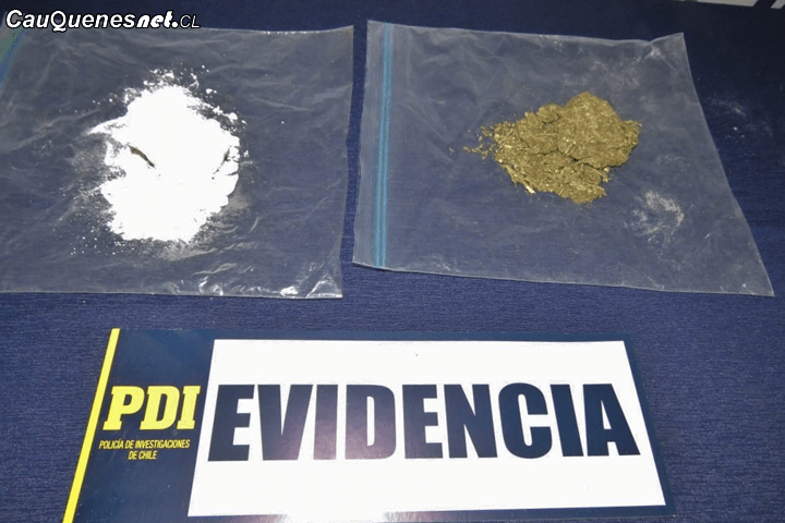 Luego de dicha inspección, los detectives encontraron 123,3 gramos de clorhidrato de Cocaína y 49,5 gramos de marihuana, los que presumiblemente serían comercializados en Cauquenes, debido a que también se encontraron elementos para la dosificación de la droga.