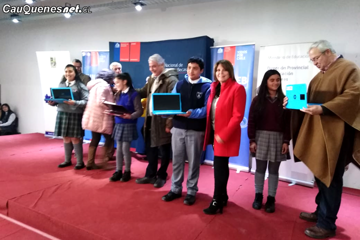 La ceremonia de entrega de los equipos se desarrolló hoy, beneficiando a medio millar de estudiantes cauqueninos que cursan séptimo básico en distintos establecimientos de la ciudad.