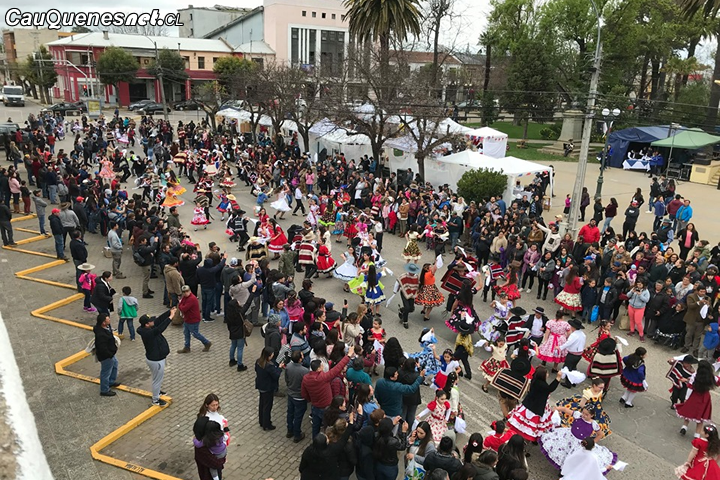 En esta oportunidad, fueron más de 800 los pañuelos desplegados, los que al compás de los pies de cuecas que se bailaron en el frontis de la Municipalidad de Cauquenes, estudiantes y público, no dejaron pasar para ser parte de una jornada llena de simbolismos patrios.