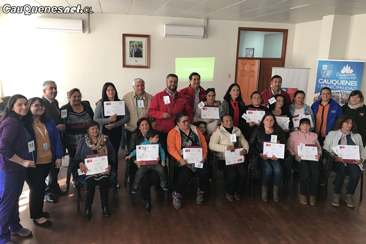 En la Instancia el alcalde, concejales, director de FOSIS, Gobernador y CORE hicieron entrega de los certificados y de un libro a los 34 beneficiados de Cauquenes.