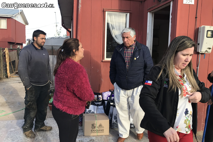 Hasta Villa Las Palmeras, donde vive actualmente las familias afectadas, llegó el alcalde Juan Carlos Muñoz, con equipos del municipio cauquenino para hacer entrega de la ayuda para que se comiencen a levantar ambas familias.