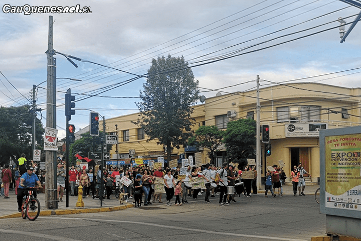 Una alegre y familiar jornada de protestas se vivió esta tarde en Cauquenes, que partió en la Plaza de Armas de la ciudad y luego se trasladó hasta uno de los accesos de la comuna.