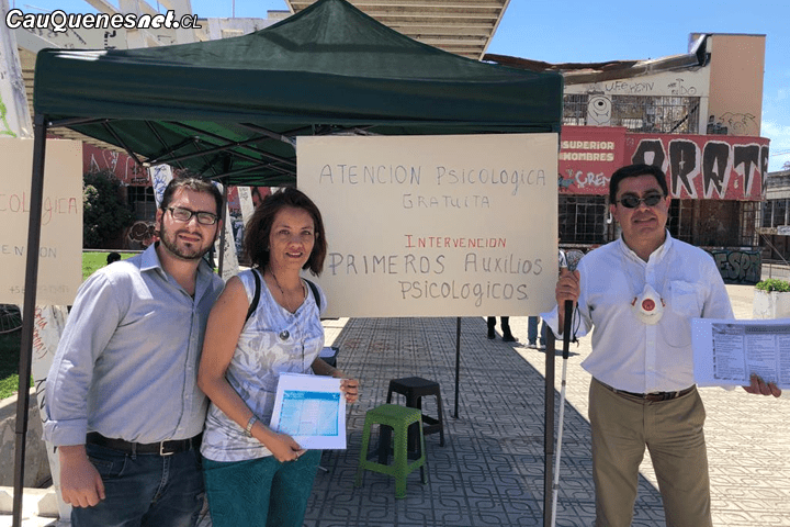 Desde el pasado lunes 11 de octubre, algunos miembros del Coddam, hemos instalado un dispositivo de salud mental en la plaza Cien Fuegos de Talca, con objeto de contribuir al descenso progresivo del miedo y la rabia que algunos quieren introducir en el alma Chilena, para así quizás intentar retener su pobreza de espíritu y privilegios logrados a punta de “choclones”, película de miedo y saqueo incluidas. Esta acción ciudadana, que siempre debería desarrollarse en los países de la OCDE después de crisis Ambientales como incendios masivos, fenómenos naturales como los terremotos y crisis institucionales como la experimentada por Chile, busca desde un modelo psicológico cognitivo conductual, hacer; una “intervención en crisis” de la ansiedad elevada que experimentan algunos, con objeto de ahuyentar el miedo que finalmente pudo ser aprovechado por quienes buscaban un nuevo Golpe de Estado, además de; hacer retornar a la población a esta condición mental que nos permita pensar tranquilamente en como sacar lo mejor de nosotros y dejarlo por escrito, sin letra chica en esta nueva carta magna y sin olvidar las demandas sociales que gatillaron esta revuelta.