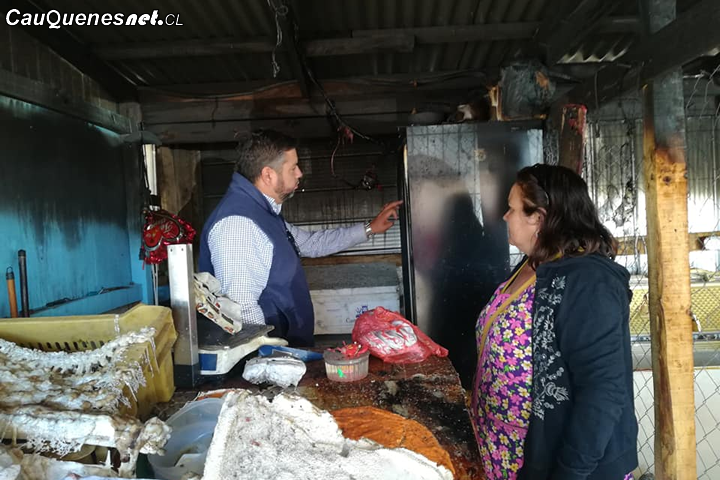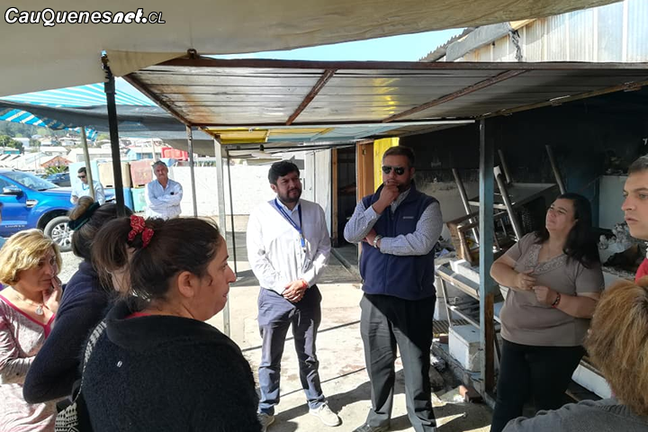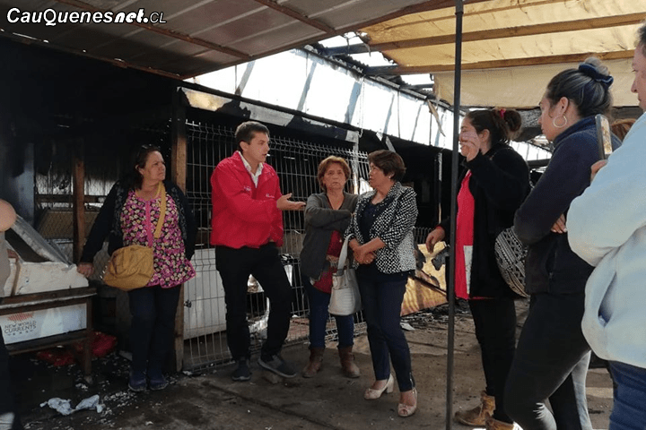 El Gobernador de Cauquenes, Francisco José Ruiz junto al Seremi de Economía Matías Pinochet y la Alcaldesa de Pelluhue María Luz Reyes visitaron a las locatarias del Mercado Provisorio de mariscos de Curanipe que fue afectado en la madrugada de este jueves por un voraz incendio destruyendo diez locales.