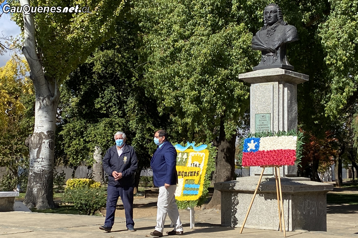 La capital provincial del Maule Sur conmemoró 278 años de vida de forma diferente debido a la pandemia del Covid19, sin el tradicional desfile, pero con la postura de ofrendas florales en el monumento de José Manso de Velasco, fundador de Cauquenes.