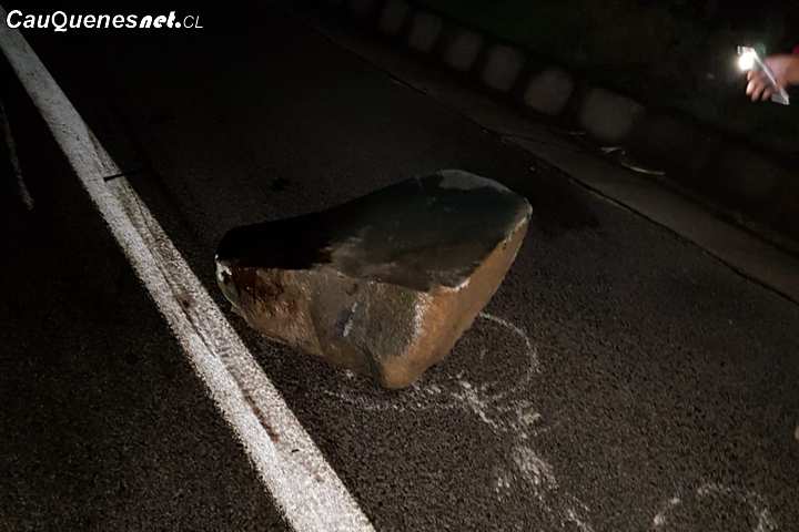 Allí, a la altura del kilómetro 15, una gigantesca piedra se habría desprendido del cerro aledaño a la ruta golpeando de lleno en una camioneta que transitaba por la vía.