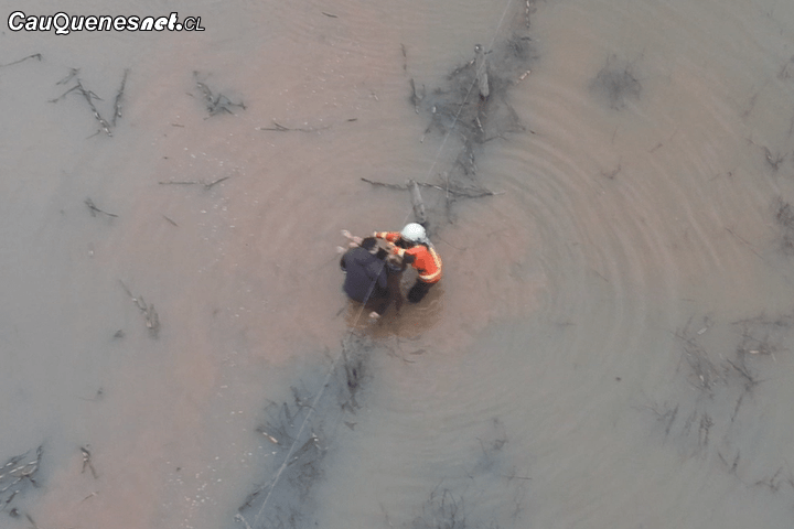 Cauquenes: Impactante rescate de Adulto Mayor desde vega inundada en Coronel de Maule