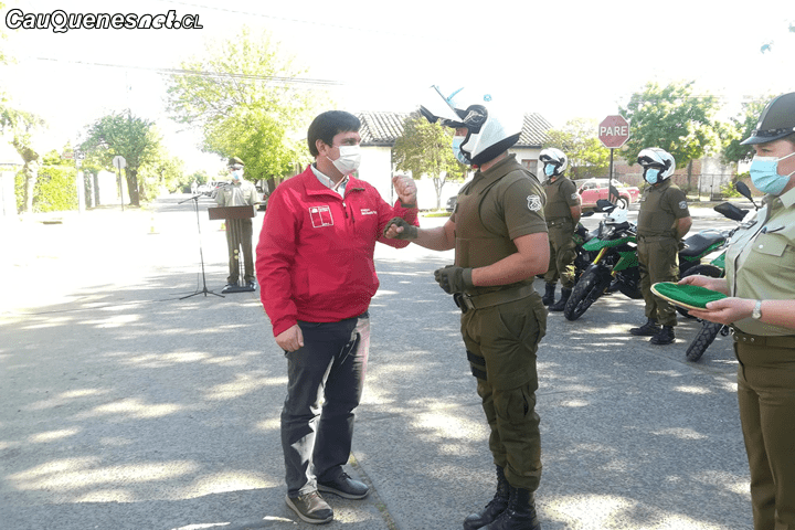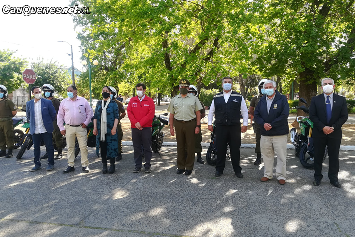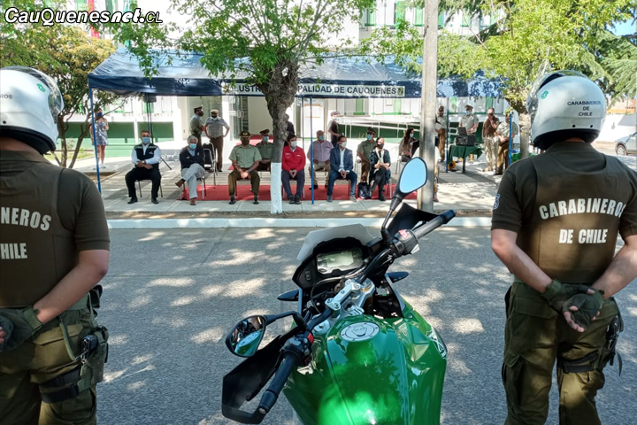 En Cauquenes se entregaron 11 nuevas motocicletas con su equipamiento correspondiente, en una ceremonia realizada en las afueras del nuevo edificio institucional emplazado en su tradicional ubicación de calle Membrillar, frente a la Plaza Vieja, lo que contó con la presencia del intendente Juan Eduardo Prieto, el Gobernador José Francisco Ruiz, el director de la VII Zona de Carabineros, Héctor Salazar; el presidente del CORE Maule, Rafael Ramírez y los consejeros por Cauquenes, María del Carmen Pérez y Juan Andrés Muñoz.