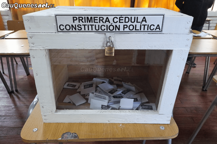 En la comuna de Cauquenes, con el 100% de las 120 mesas comunales escrutadas, la opción Apruebo alcanzó 8.227 votos equivalentes al 63,65%, mientras que el Rechazo llegó a los 4.699 votos que equivalen al 36,35%.