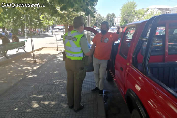 Este lunes en el centro de Cauquenes realizaron controles vehiculares instando a respetar las señaléticas de tránsito, las velocidades establecidas legalmente, en definitiva a la conducción responsable. Además de entregar información a los transeúntes, de estar atentos a no ser víctimas de delitos, mientras se despalzan por el centro de la ciudad.