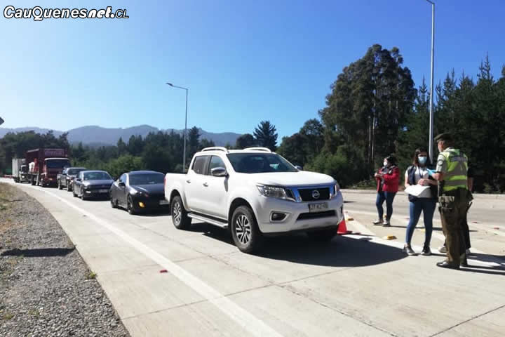 Un taco kilométrico se formó en el acceso a Pelluhue, producto del control sanitario y el gran número de vehículos que intentaba llegar hasta la comuna costera.