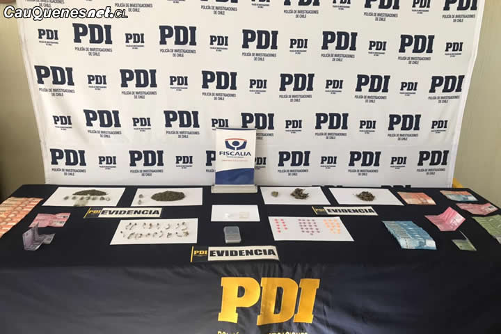 Detectives MTCERO de la PDI de Cauquenes, en coordinación con Fiscalía del Maule detuvieron a tres personas, quienes mantenían en su poder drogas exóticas, correspondiente a clorhidrato de cocaína, cannabis sativa procesada, comprimidos de MDMA y hongos alucinógenos del tipo Psilocybe, además de dinero en efectivo.