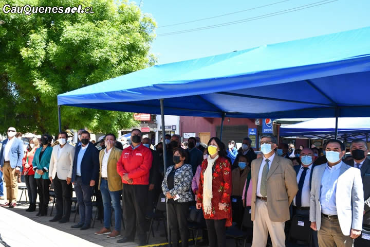 La ceremonia realizada en la plaza de armas de la localidad costera, contó con la presencia de importantes autoridades encabezadas por el Delegado Presidencial Provincial, Francisco Ruiz; la Alcaldesa de Pelluhue, María Luz Reyes; la Seremi de Obras Públicas, Claudia Vasconcellos; Consejeros Regionales, miembros del Concejo Municipal, representantes de Carabineros, Capitanía de Puerto, Policía de Investigaciones, Cura Párroco, Directores de servicios, Dirigentes vecinales y gran parte de la comunidad.