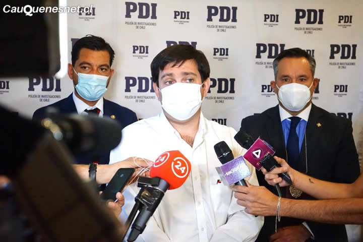 y el jefe del Departamento de Migraciones y Policía Internacional de la PDI de Talca, comisario Sergio Valdés, anunciaron la expulsión de tres extranjeros de nacionalidad argentina que presentaron test PCR ideológicamente falsos.
