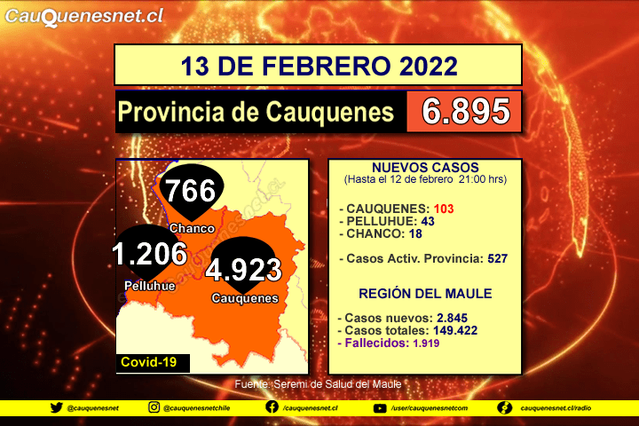 Sigue leyendo "13 de febrero 2022: #Cauquenes registró 103 nuevos contagiados, #Pelluhue 43 y #Chanco 18"