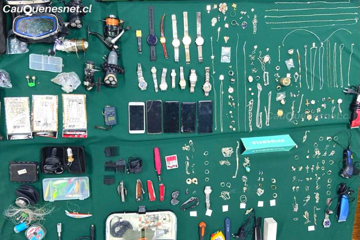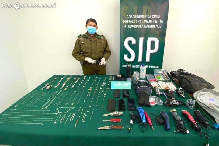 Carabineros de la Sección de Investigación Policial (SIP) de la Cuarta Comisaría de Cauquenes en un trabajo en conjunto con la Fiscalía Local de la ciudad, durante el pasado fin de semana, logró detener a un hombre de iniciales J.A.O.S., de 33 años de edad, quien en ese minuto portaba diversas joyas en su cuello, además de distintos relojes en sus brazos y otros accesorios encontrados entre sus vestimentas y en su domicilio particular. Objetos que hacían referencia a denuncias anteriores, por robos en lugar habitado.