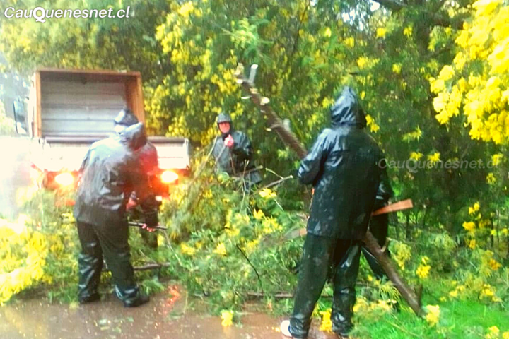 Cerca del medio día, la caída de un árbol en un camino del sector de la Medialuna de Pelluhue, se transformó en un nuevo foco de inconvenientes, debido a la obstrucción de dicha ruta, razón por la cual los funcionarios de la cuadrilla municipal, debieron dirigirse a ese sector para retirar los escombros y despejar la vía, para que se restableciera la libre circulación.