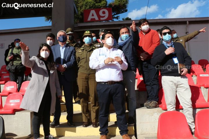 Las autoridades revisaron los últimos detalles técnicos para verificar la seguridad del espectáculo y recorrieron las instalaciones del Estadio Fiscal de Talca, sede del encuentro.