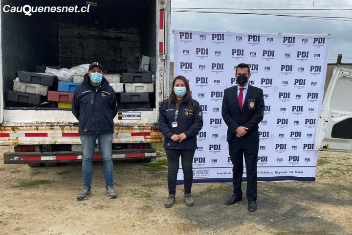 Fue así que tras un seguimiento a los vehículos, en la comuna de Cauquenes se realizó un control de identidad a los choferes de los mismos, comprobando, con apoyo de fiscalizadores de Sernapesca y el Seevicio de Impuestos Internos, que no traían la documentación legal requerida.
