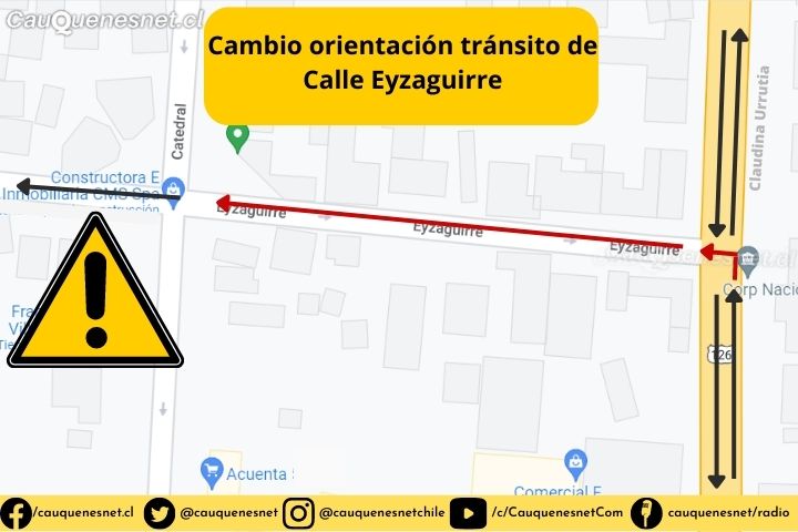 Sigue leyendo "#Cauquenes: Cambia sentido del tránsito en calle Eyzaguirre desde el lunes 19 de diciembre"