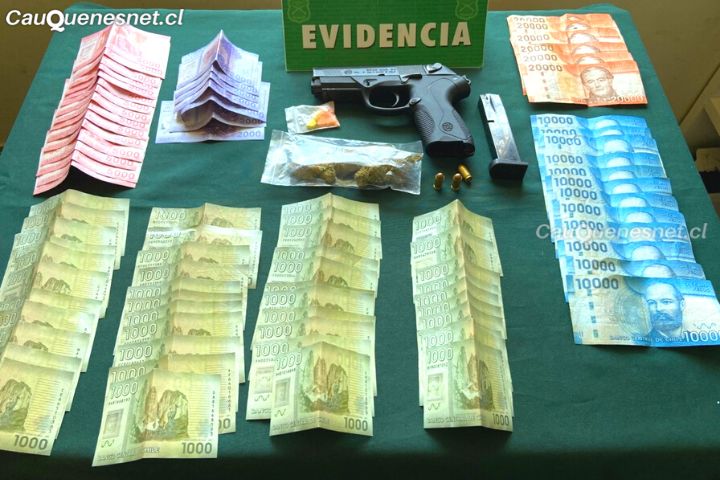 A su vez, los funcionario policiales pudieron constatar que el vehículo en que viajaban presentaba encargo por robo desde noviembre de 2022 desde la comuna de Talca. Como si fuera poco, y tras una inspección visual, Carabineros encontró un arma de fogueo marca Bruni modificada, con tres municiones calibre 9 milímetros, además de droga y 379 mil pesos en efectivo.