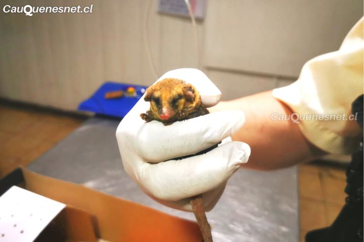 El marsupial, originario de Chile, fue encontrado con severas quemaduras e inmediatamente personal de la Conaf que combatía el incendio contactó al Servicio Agrícola y Ganadero (SAG), para dar aviso del hecho.