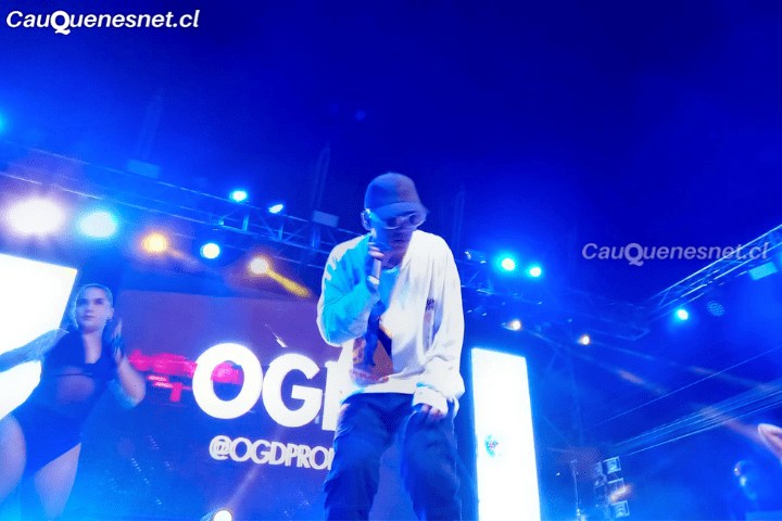 Era el show más esperado de la segunda jornada de la Fiesta del Chuico y la Vendimia de Cauquenes y aunque sus fanáticos debieron esperar, incluso con una rotura de matríz de por medio, lo cierto es que toda la espera les valió la pena, porque bailarron, cantaron y gritaron, con el espectáculo con el que es -actualmente- uno de los principales exponentes del género urbano chileno.