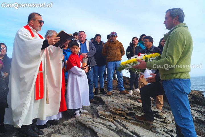 Posteriormente, los socios de los sindicatos de Pescadores de Curanipe y la comunidad católica local, dieron cursa a la procesión por las calles principales de Curanipe, hasta llegar a la roca de San Pedro en donde concluyó la ceremonia.