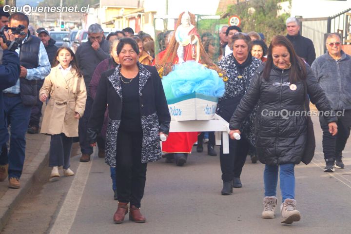 En Pelluhue la colorida fiesta, que tiene gran realce cultural y turístico, se celebró con actividades, que comenzaron con la liturgia en la Capilla Santa Teresita del niño Jesús de Pelluhue, donde participó la Alcaldesa de Pelluhue, María Luz Reyes, junto a los miembros del Concejo Municipal, los socios de los sindicatos de Pescadores y la comunidad católica.
