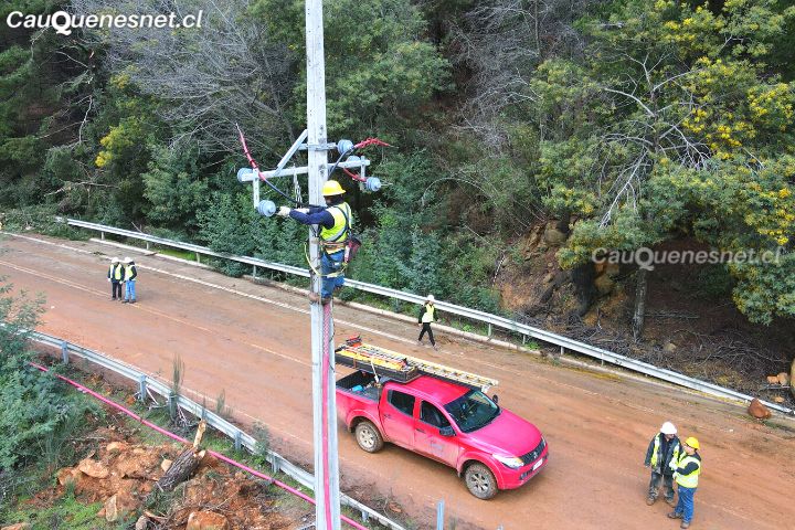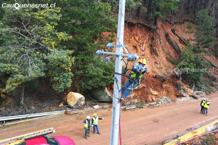 Es así como, desde el lugar en que se están realizando las obras, Rivas indicó: «Tenemos a todo nuestro personal trabajando en la instalación de un cable bypass, que va a permitir poder recuperar el suministro a 11 mil 140 clientes, entre las comunas de Pelluhue y Chanco, que tenemos actualmente generando».