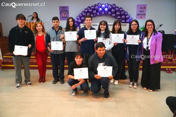 El martes 28 en Cauquenes, en el marco del Día Internacional #25N, se llevó a cabo la ceremonia de certificación de Monitores y Monitoras de Prevención en Violencias contra las Mujeres, donde cerca de 50 estudiantes del liceo Claudina Urrutia de Lavín se capacitaron en temas relacionados a la violencia de género con dinámicas entretenidas y prácticas que dictó durante varias sesiones la dirección regional del Servicio Nacional de la Mujer y la Equidad de Género.