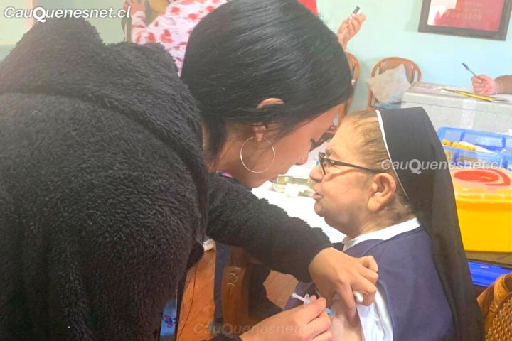 Para dar cumplimiento, el equipo de vacunatorio del Cesfam Ricardo Valdes se trasladó hasta el Eleam «Santa Teresa» para vacunar a los residentes y funcionarios.