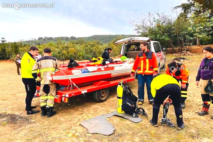 #CAUQUENES: Después de ser reportado como robado, un vehículo Hyundai fue hallado sumergido en el embalse Tutuvén por bomberos de la ciudad, quienes desplegaron un equipo de buzos para la búsqueda.