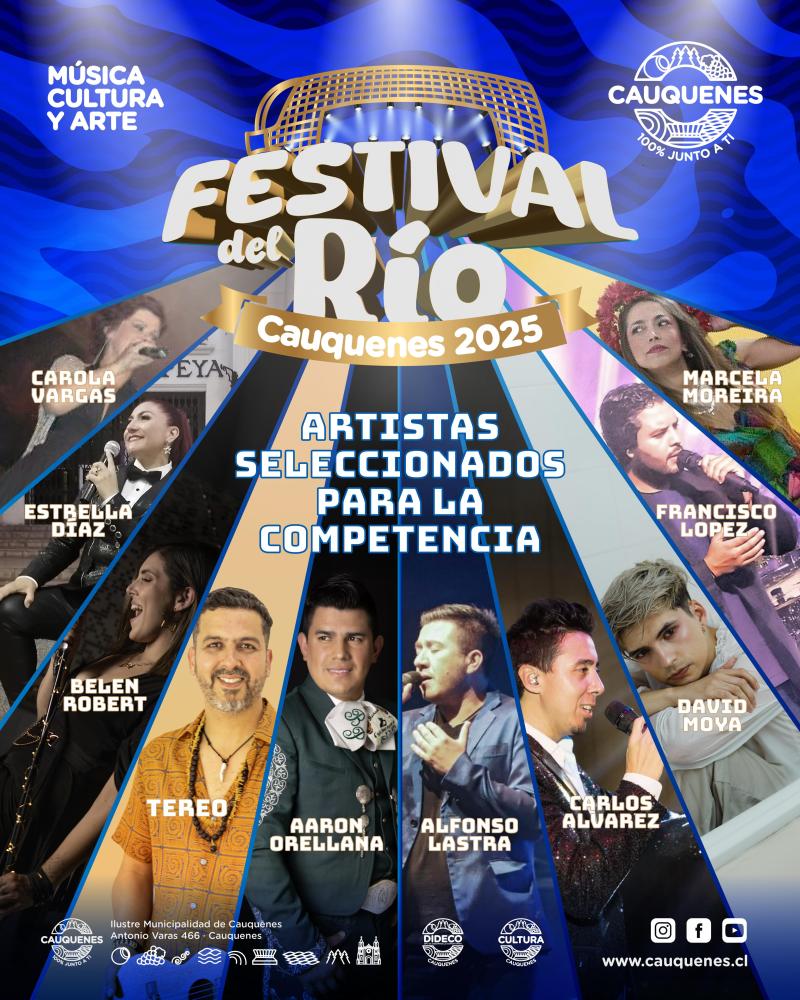 #CAUQUENES: Desde la municipalidad de Cauquenes se dio a conocer el nombre de los 10 artistas seleccionados y sus canciones inéditas, que darán vida a la competencia del Festival Nacional del Río de Cauquenes 2025.
