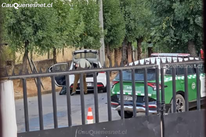 Una particular colisión entre un vehículo policial y un automóvil particular se registró la mañana de este martes en la intersección de las calles Chacabuco y Villalobos, en pleno centro de Cauquenes.