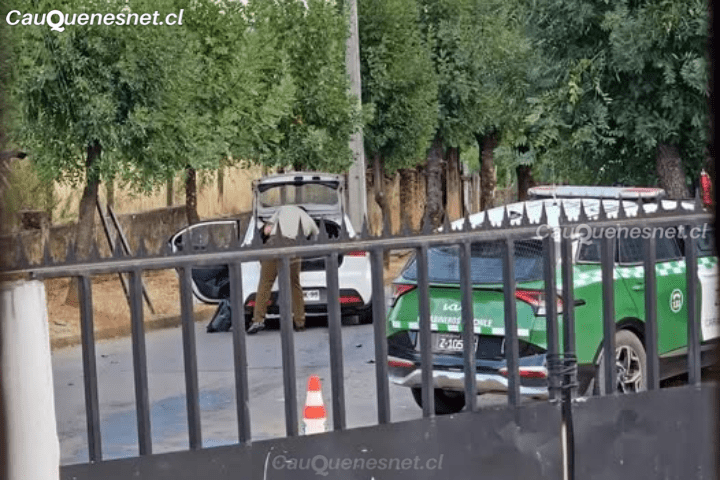 Una particular colisión entre un vehículo policial y un automóvil particular se registró la mañana de este martes en la intersección de las calles Chacabuco y Villalobos, en pleno centro de Cauquenes.