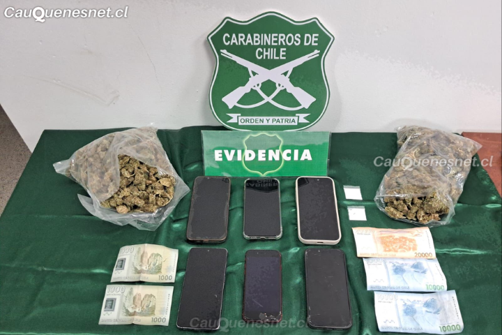 #CAUQUENES: Los detenidos, ambos de 24 años, transportaban cerca de 490 gramos de droga y dinero en efectivo.