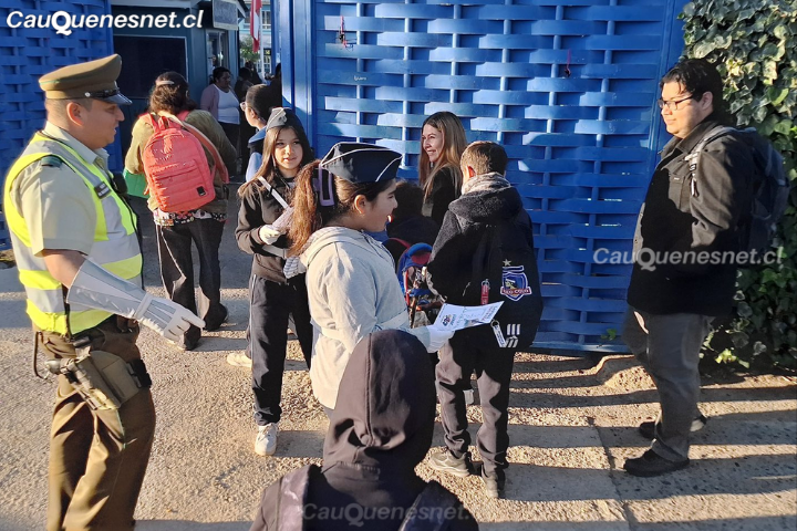Funcionarios de Carabineros de Chile del Retén Estación, junto a la Brigada Escolar de la Escuela Artística Barrio Estación, realizaron en Cauquenes una jornada de difusión orientada a prevenir el bullying y fortalecer la convivencia dentro de la comunidad educativa.